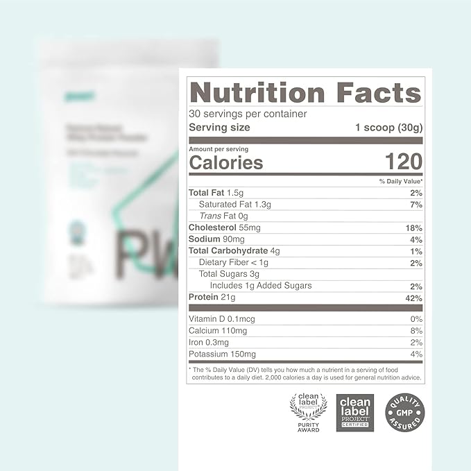 - PW1 WHEY PROTEIN POWDER VANILLA and DARK CHOCOLATE BUNDLE: This Puori grass-fed protein powder bundle features the Clean Label Project Purity Award-winning, PW1 Whey Protein Powder Vanilla flavor, and PW1 Whey Protein Powder Dark Chocolate flavor. Many protein supplements contain artificial sweeteners, additives, and unnecessary ingredients. We want products that only contain the essential building blocks for recovery. Each contains 1.98 lbs.