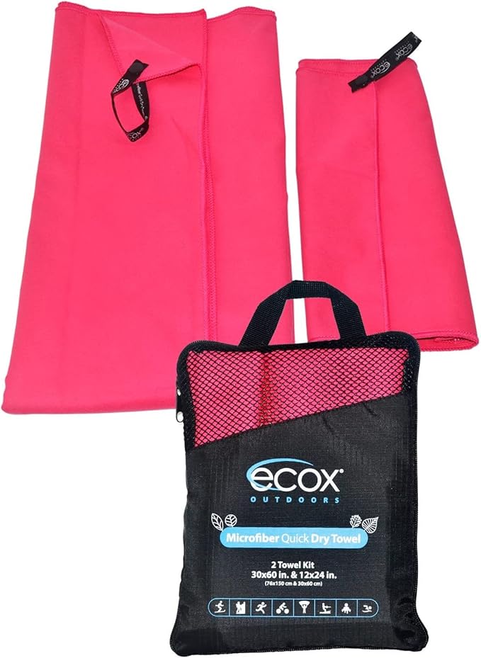 ecox Outdoors Microfiber Towel Fast Drying Soft Feel Fast Action Drying for Gym Beach Outdoors Travel Yoga Camping Compact Size 2 Piece Set 30x60 in and 12x24 in Red MFT2PRD