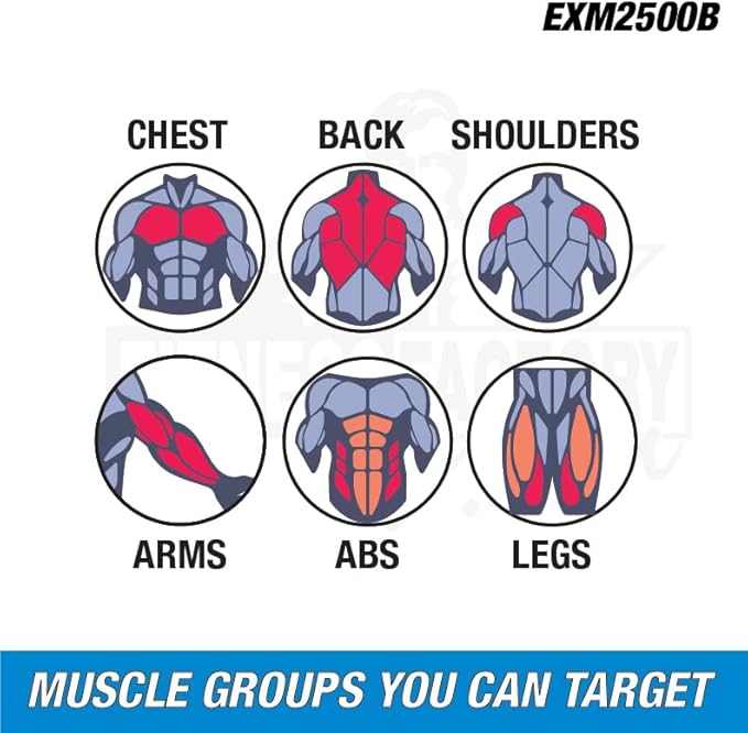 - EXERCISES: Use this home gym to complete a variety of full body workouts (pec fly, bench, incline, standing military and decline press, pull over, crossover, upright row wide and close grip front lat pulldowns and pull up, ab crunch, back extension bicep and leg curls, tricep press down and kickback, leg extension, glute kick.