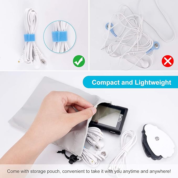 - 10 STRONG SELF ADHESIVE AND THICKER REUSABLE ELECTRODE PADS: The Belifu electrode massager comes with 10 self-adhesive reusable conductive pads and 5 set of leads wires, a comprehensive adhesive layer on the pad can be stuck more firmly onto the skin when used. REUSABLE FASTENING CABLE TIES- no more cable mess after use with fastening cable ties. A quick and easy solution for tens lead wires management. The Best Gift for Father's Day