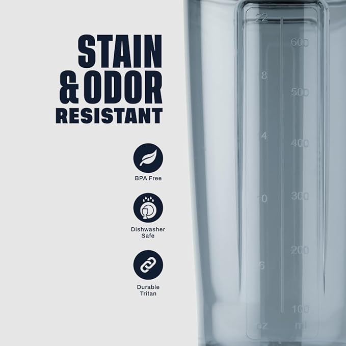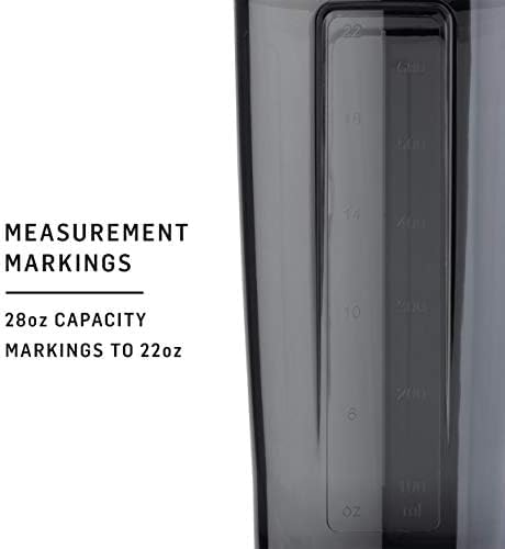 - 28-ounce capacity (note: measurements only go to 22 ounces) sleek and durable Pro28 shaker cup for mixing protein shakes, smoothies, and supplements