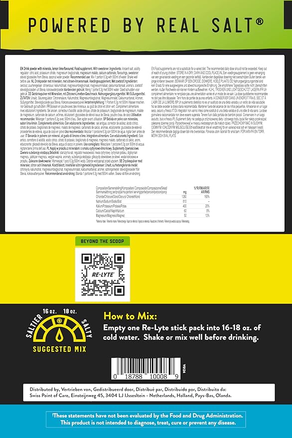 - REAL SALT'S DELICIOUS UNREFINED SEA SALT - Most brands can't use enough sodium to replace what your body loses during the day – because they use refined white salt. Re-Lyte includes Real Salt's delicious taste and 60+ trace minerals.