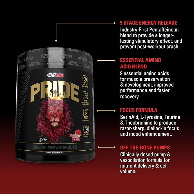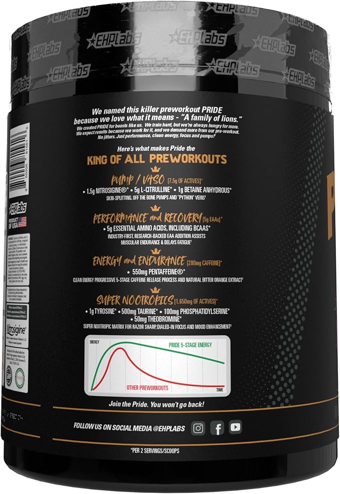 - Pre Workout Powder for Men & Women - PRIDE is the most advanced pre-workout within energy supplements containing Pentaffeine 5-stage energy that will leave you feeling energized without a crash. It is suitable for all fitness levels, and gives the pre-workout benefits for beginners and advanced trainers alike.