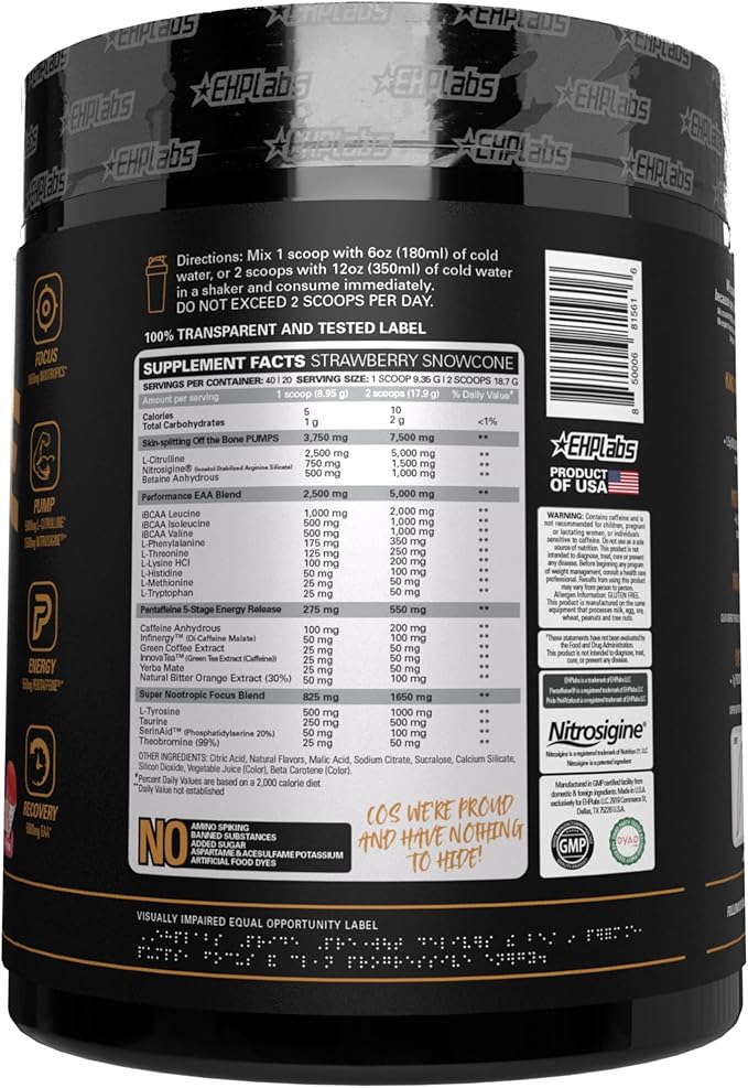 EHP Labs Pride Pre Workout Powder Energy Supplement - Sugar Free Preworkout for Men & Women, Energy Powder Boost Drink with BCAA - 280mg of Caffeine - Strawberry Snowcone (40 Servings)