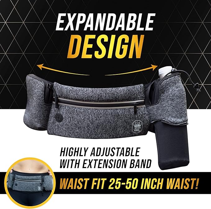 Running Belt with Water Bottle Holder - Waist Bag With Extender for Jogging, Hiking, Cycling, Walking - Dog Walker Hydration Fanny Pack - Sport Pouch iPhone Carrier for Women and Men - Gray