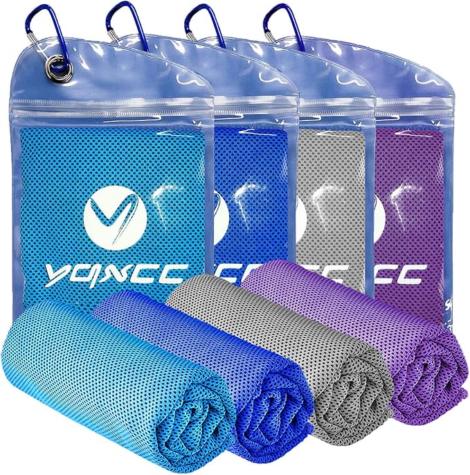 YQXCC 4 Pack Cooling Towels | 40"x12" | Cool for Neck and Face | Microfiber Soft Breathable Chilly | for Yoga, Sport, Golf, Gym, Camping, Running & More Activities