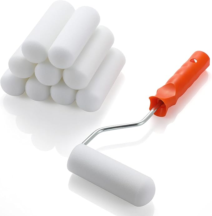 - Paint roller tray kit with 10 foam mini rollers and 4"heavy-duty paint frame packed in a mini roller paint tray.