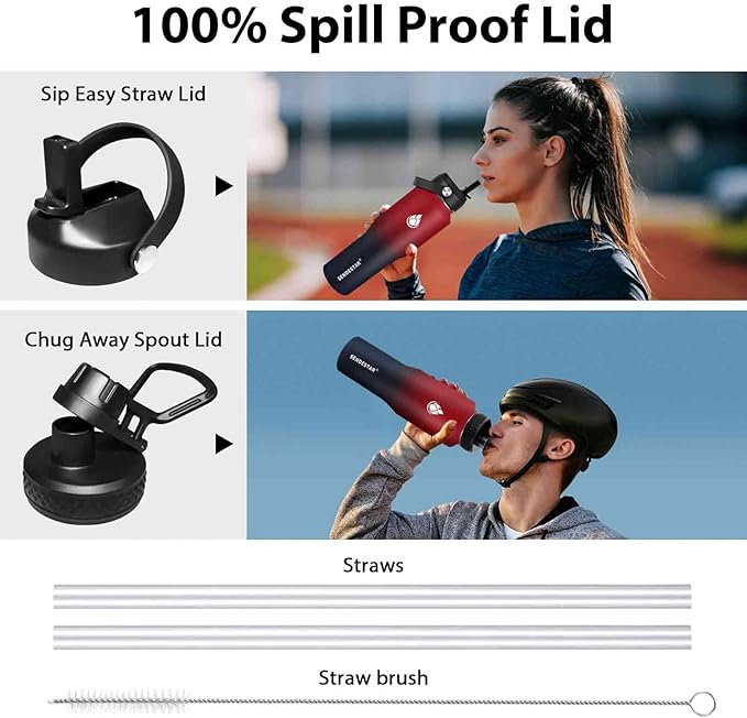 - 【PACKAGE】:You will get 1x SENDESTAR 32 oz Water Bottle,1 x Spout Lid,1 x Flex Straw Lid,2 x Straws, 1 x Straw Brush.If you have any problems, just contact us and we will resolve your problem in time!