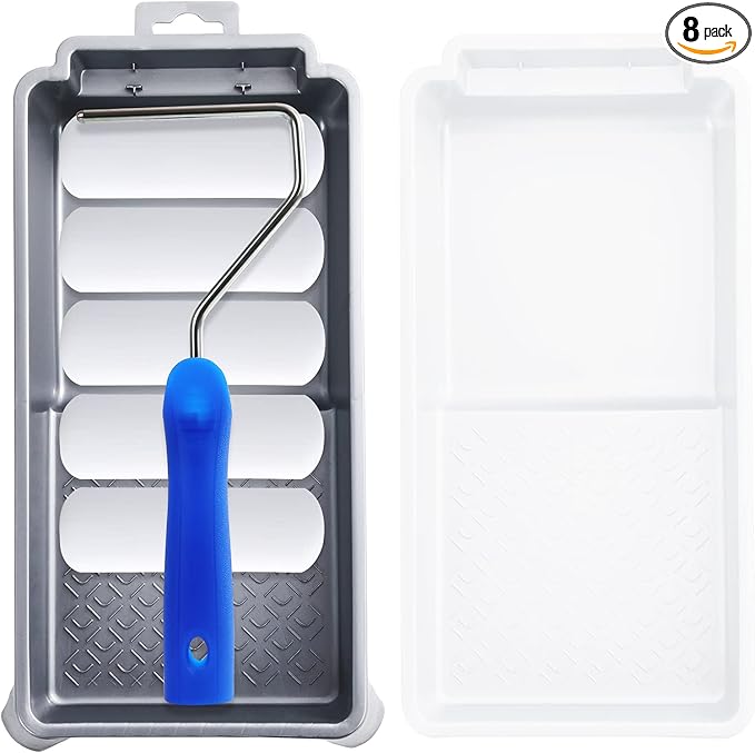 Mister Rui Foam Paint Roller, 8 Pack 4 Inch Paint Roller Kit, Complete 4" Mini Paint Roller Kit with Small Foam Paint Roller Covers, Frame, Tray and Liner for Professional Painting Results