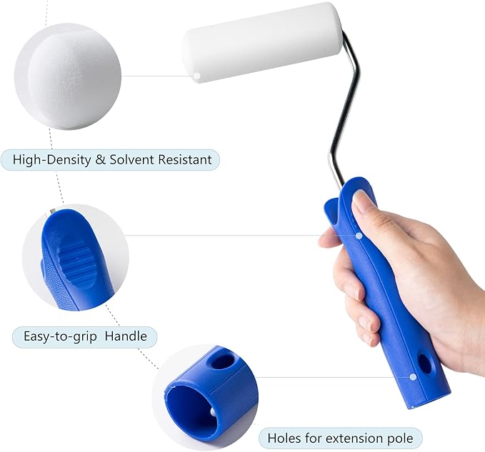 - High Density Foam: Mini foam paint roller is durable with water and oil based paints, glosses, stains, emulsions, and varnishes, and won't deform easily