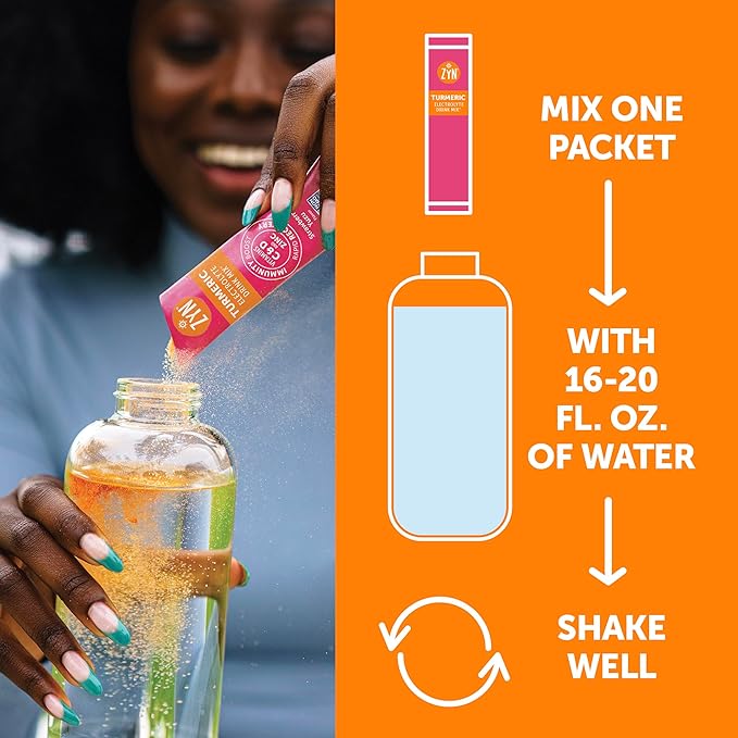 - HELPS SUPPORT YOUR IMMUNE SYSTEM: Get your daily dose of vitamin C, D, and zinc from ZYN’s Turmeric drink mixes. Fortified with 100% daily value of these much-needed vitamins and minerals, it’s an effective powerhouse to help boost your immune defense, while providing the perfect balance of electrolyte minerals for rapid hydration.