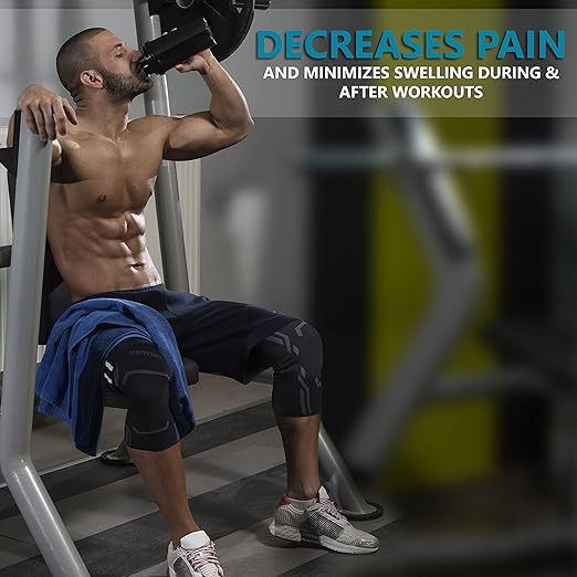 - Take action and prevent knee pain before it occurs! Optimize joint and muscle performance while preventing injuries. The Bodyprox Knee Compression Sleeves are a great addition to your gym bag, as they provide extra support and protection needed to minimize risks and contribute to proper patella alignment. Made from an extremely elastic blend of nylon, spandex, and latex that contours to each knee offering support and compression where you need it most. Silicone lining ensures a non-slip grip.