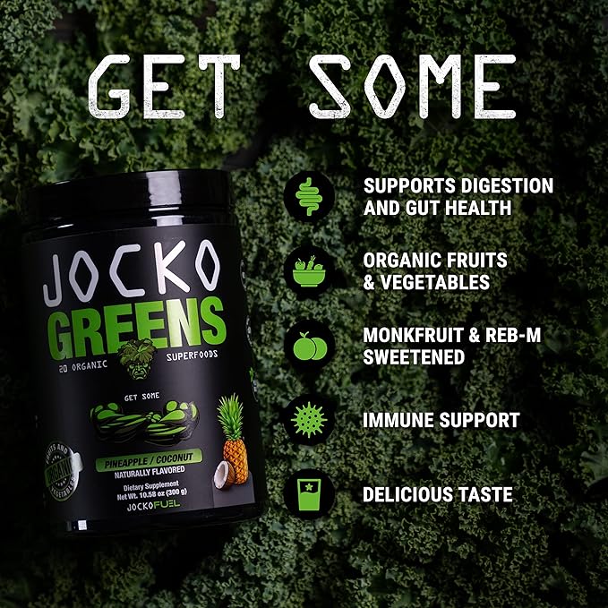 - BLEND OF ORGANIC GREENS & SUPERFOODS: This nutritious blend of 23 superfoods like Spirulina, Wheat Grass, and Chlorella is the perfect way to start the day. This blend was developed together with Jocko Willink with three goals in mind: holistic health support, the highest quality ingredients, and great taste.