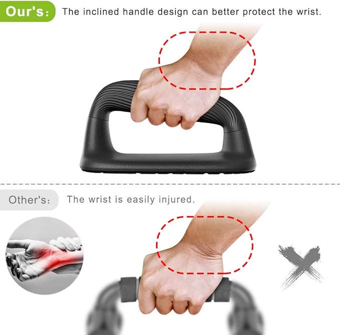 - Comfortable Handle: The handles of push-ups are made of high-quality soft plastic, protect your hands, it’s not easy to get calluses. The diameter is 1 3/5 inches, and the grip is comfortable and ergonomic