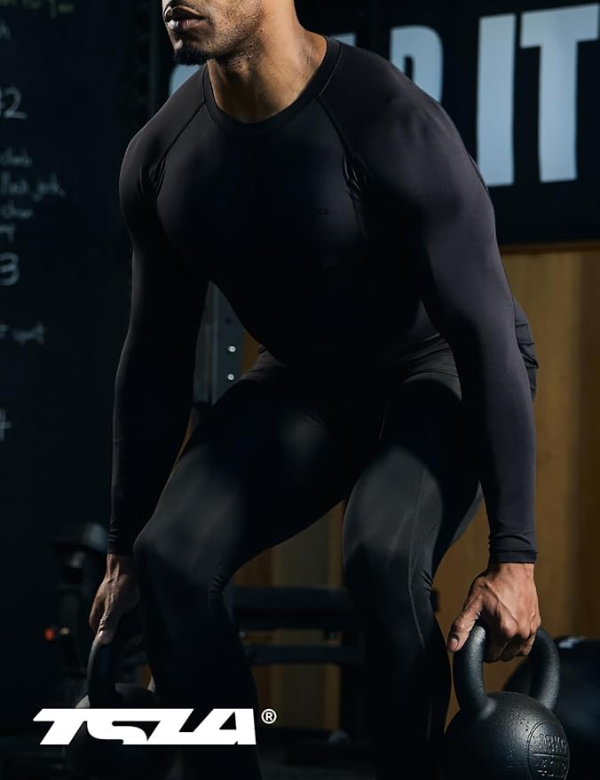 TSLA Men's UPF 50+ Compression Shirts, Cool Dry Long Sleeve Athletic Tops, Sports Baselayer Workout Shirt