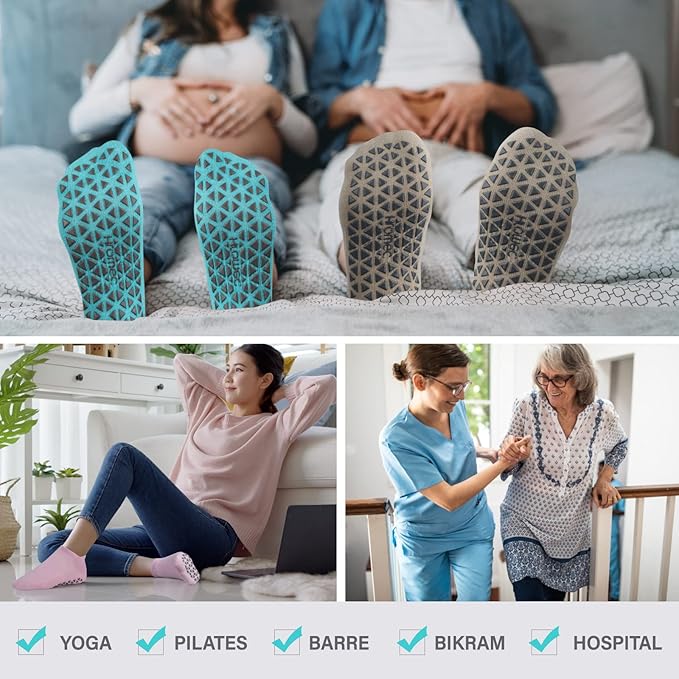 - SIZE: Fits Women’s shoe size 5-7. These adult grippy socks for men and women are perfect for yoga, pilates, barre, ballet, bikram, studio, gym or dance. Also Ideal for hospital socks, floor socks, physiotherapy, elderly care, pregnancy and more to prevent falls from stairs , or the floor.