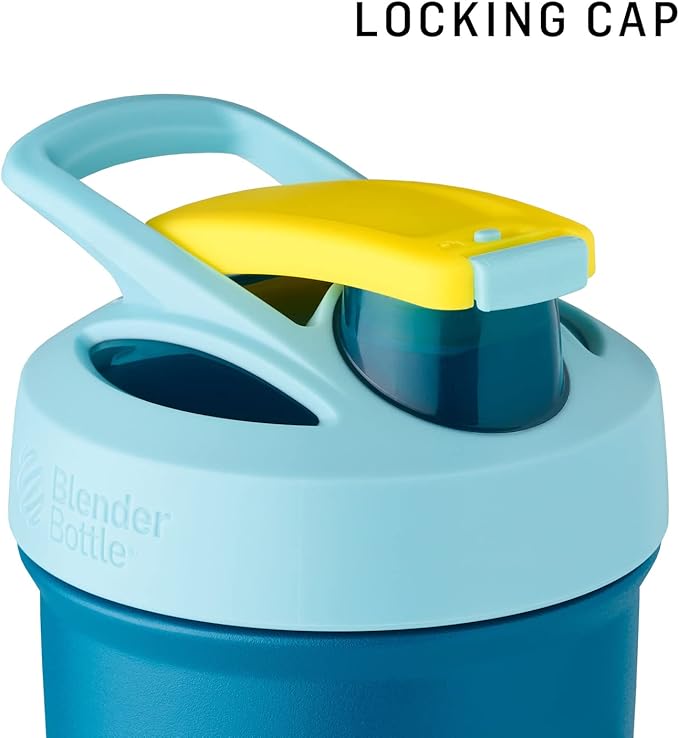 - Stainless steel, spill-proof BlenderBottle, for mixing supplements and smoothies, features an easy-open/easy-close push-button flip cap with a sliding lock to prevent accidental opening