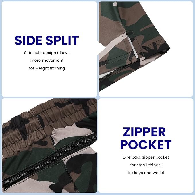 - 【Storage】Mens workouts shorts design in regular fit, featuring elasticized waist with adjustable drawstring, solid color, 1 back zipper pocket ; 2 side pockets prevent your phone from falling out when you exercise; Open flap design allows more movement for weight training.