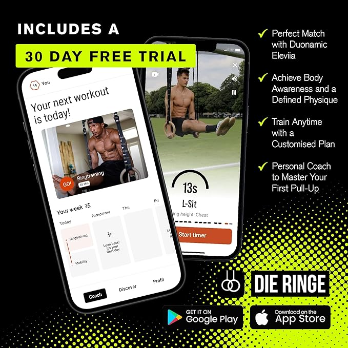 - UNLOCK MORE WORKOUTS: Upgrade your Eleviia with the Duonamic Rings attachment and unlock new exercises like push ups, dips, rows, muscle ups, and ring pull ups to target your core, chest, back, triceps and more.