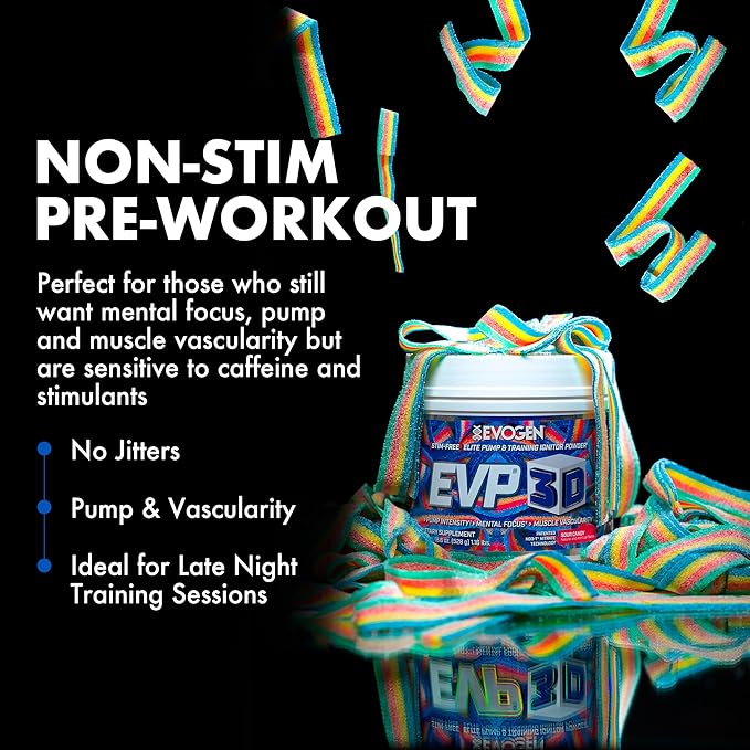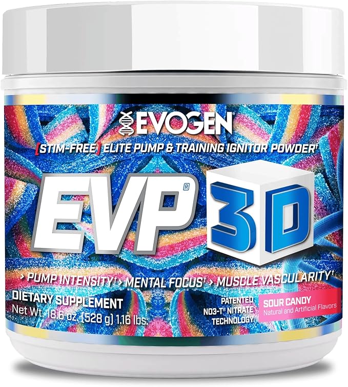 Evogen EVP 3D - Stim Free Pre Workout Powder for Men & Women | Sugar Free Non Stim Preworkout with Beta Alanine and Creatine for Energy & Pump | Sour Candy | 40 Servings