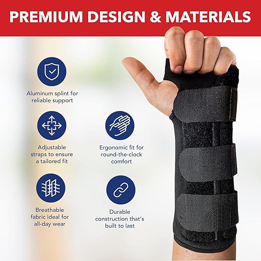 - TAILORED FOR LASTING COMFORT: Our wrist brace for right hand/left hand has a built-in splint and is crafted with breathable materials. With adjustable straps, our carpal tunnel brace provides a secure fit for most hand sizes.