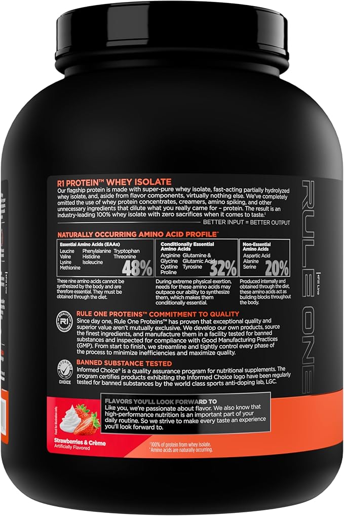 Rule 1 R1 Protein Whey Isolate - with 25g Protein & 6g BCAA Exclusively from Isolated & Hydrolyzed Sources for Workout Recovery (5 Pounds*, Strawberries & Crème)