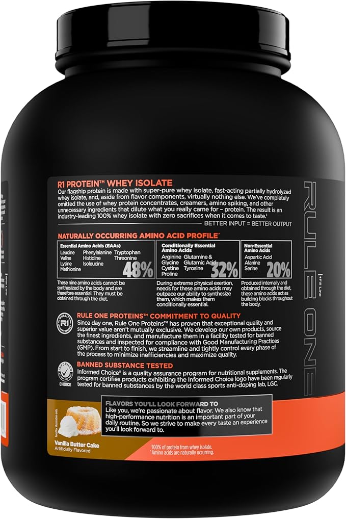 Rule 1 R1 Protein Whey Isolate - with 25g Protein & 6g BCAA Exclusively from Isolated & Hydrolyzed Sources for Workout Recovery (5 Pounds*, Vanilla Butter Cake)