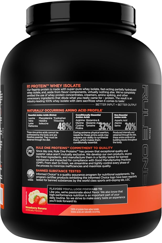 Rule 1 R1 Protein Whey Isolate - with 25g Protein & 6g BCAA Exclusively from Isolated & Hydrolyzed Sources for Workout Recovery (5 Pounds*, Strawberry Banana)