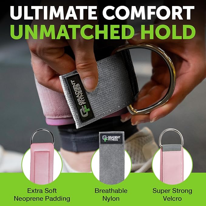 Gradient Fitness Ankle Straps (2 Pack) | Ankle Strap for Cable Machine, Ankle Bands for Working Out, Cable Ankle Strap