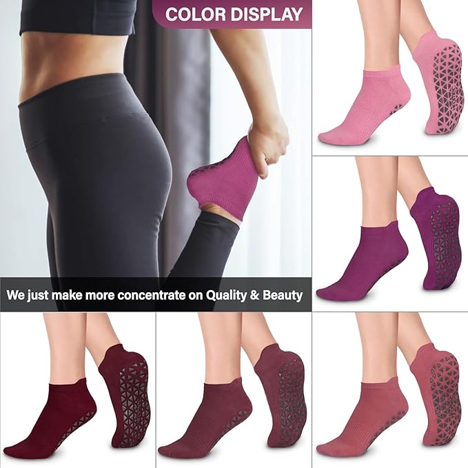 - ANTI-SLIP: Features non-slip sticky silicone grips with beautiful pattern on the bottom of the anti skid yoga socks. Those gripper socks can provide better stability & balance on the floor surface.