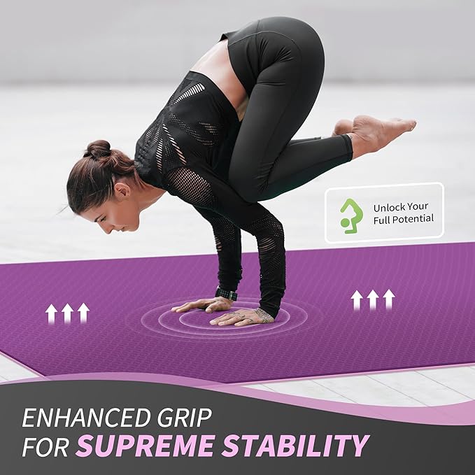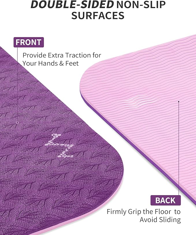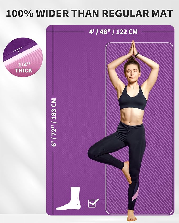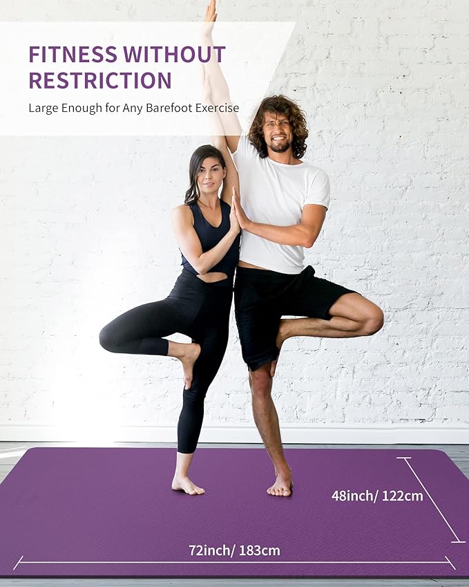 - Large Yoga Mat Without Restriction: Extra length and width(72"x 48"), You will never feel restricted or limited by the size of this fitness mat; Extra-large space allows you to do any Yoga Poses, Pilates, Stretch, Foam Rolling, Cardio Workouts, Meditations and various barefoot bodyweight training like Squats, Lunges, Push-ups, Plank Variations, and Calisthenics