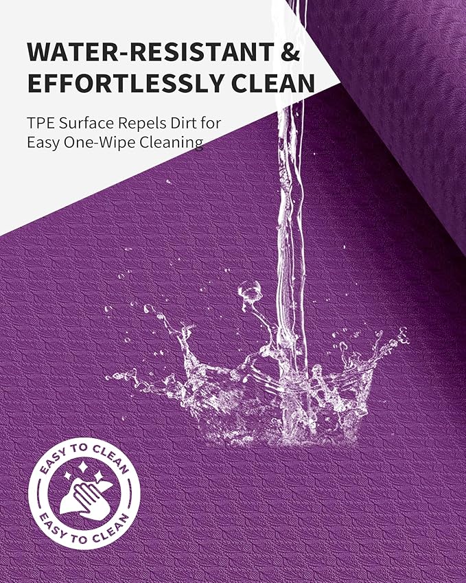 - Easy to Store and Carry: Package Include: Large yoga mat, a microfiber towel, two mat strap, a net bag; Note: We recommend that you use our yoga mat barefoot or with yoga socks, but do not wear shoes, because the shoes are rather hard on the material of yoga mats and can tear the mat