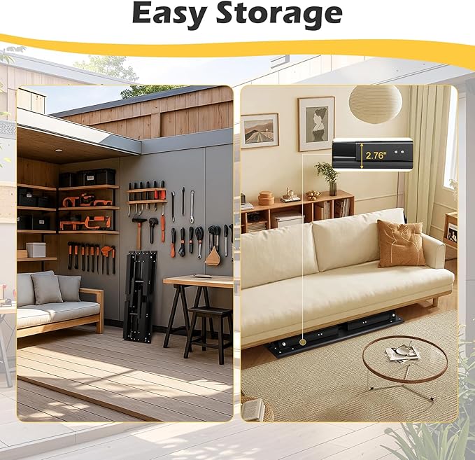 - Easy to Store & Space-Saving: When not in use, the portable folding bench folds down perfectly flat, effortlessly sliding under beds, into closets, or in car trunks. Maximize your space without compromising on seating availability for guests, parties, or your next adventure.