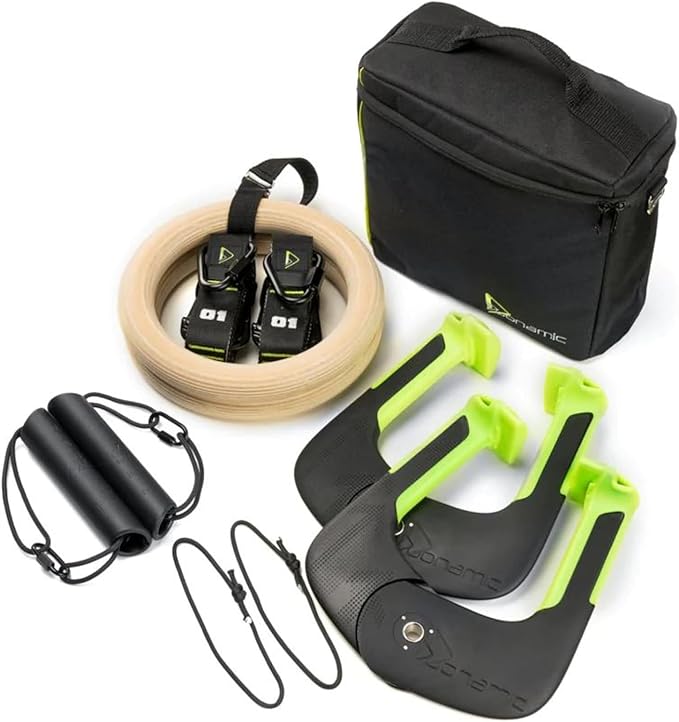 - 9-PIECE PULLUP EXERCISE KIT INCLUDES: Duonamic Eleviia Pullup Exercise System, 2x Wooden Rings, 2x Duonamic Straps with Quick Install Carabiner and Triangle Link, 2x Eleviia Attachment Ropes, and Travel Bag.