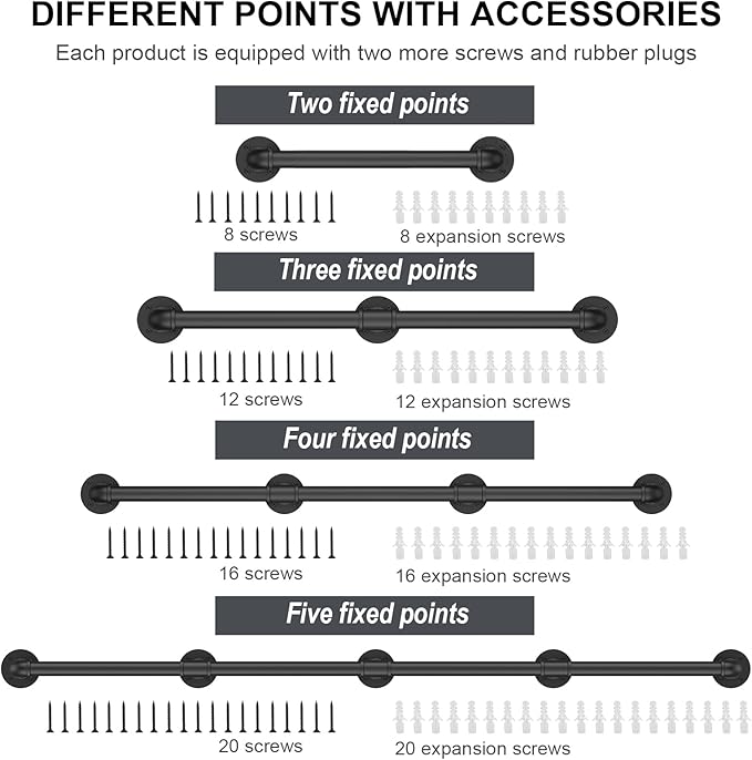 - FAST INSTALLATION: This handrails for indoor stairs comes with all screws and other accessories for DIY installation. Screw-in type wrought iron handrail, can be quickly tightened and installed. Easy to thwacked into wood, concrete walls, vinyl, brick, stucco with expansion screws. You can install with various angles, such as horizontally, inclinedly or vertically. Note: please measure the length of the grab bar you need accurately before installation.