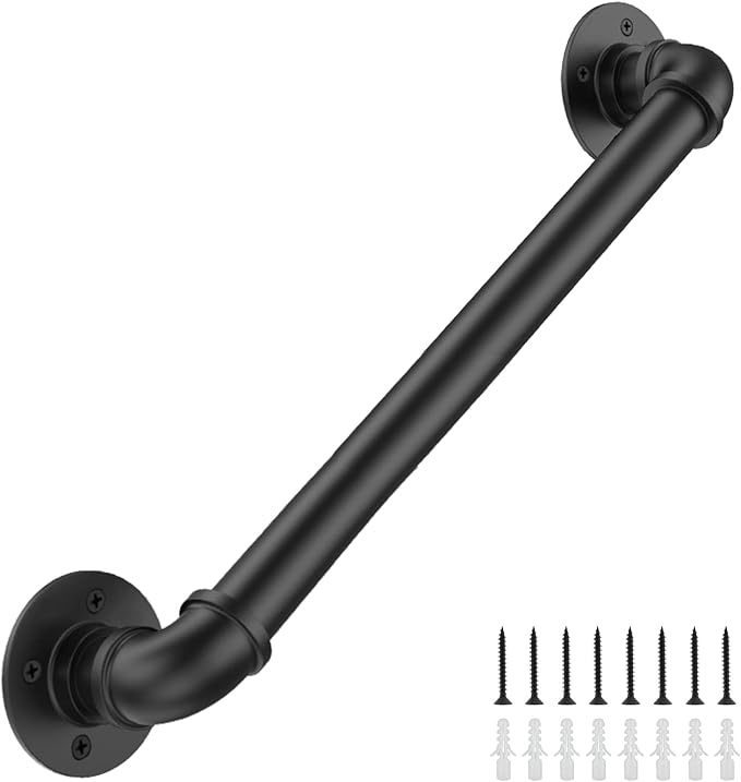 - FAST INSTALLATION: This handrails for indoor stairs comes with all screws and other accessories for DIY installation. Screw-in type wrought iron handrail, can be quickly tightened and installed. Easy to thwacked into wood, concrete walls, vinyl, brick, stucco with expansion screws. You can install with various angles, such as horizontally, inclinedly or vertically. Note: please measure the length of the grab bar you need accurately before installation.