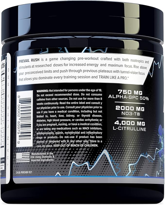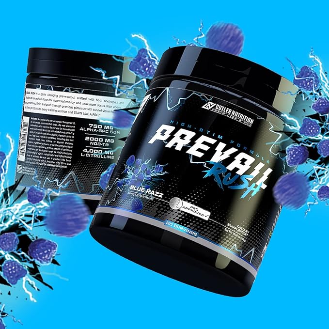 Cutler Nutrition High Stim Pre Workout Powder Prevail Rush Preworkout for Men & Women for Intense Pumps Energy and Focus with Caffeine NO3T Betaine and Dynamine | Sour Blue Razz (20 Servings)