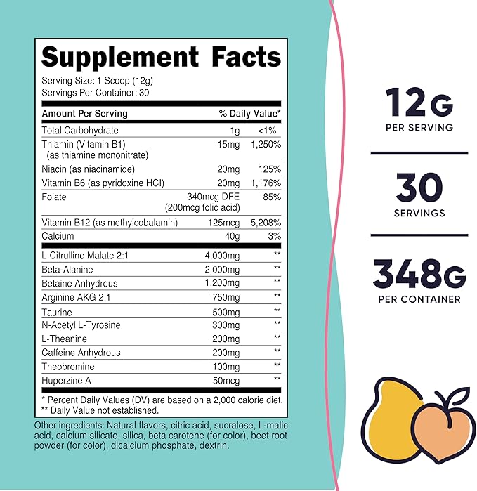 - 30 Servings of Women's Pre-Workout Powder Per Bottle