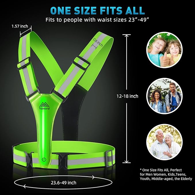 - BE SEEN FROM A LONG DISTANCE - Topward LED Reflective Vest is an upgraded, new generation safety vest with LED flash lights both in front and back; Keep you safe for running, (dog)walking, riding, skiing and motorcycle, etc.
