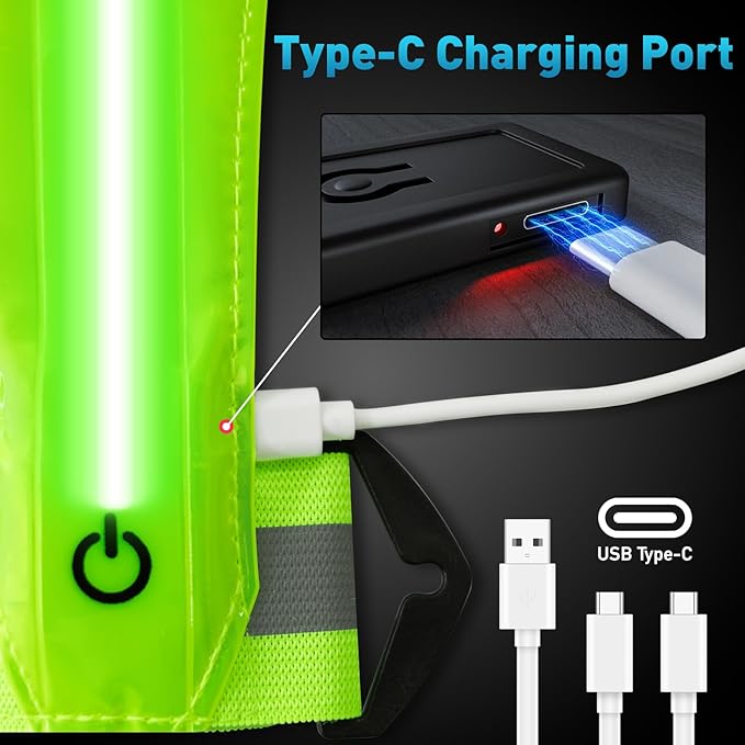 - USB RECHARGEABLE LED LIGHT - 70% of pedestrian fatalities happen between 6pm & 6am. It’s a better alternative to traditional safety vests thanks to durable build-in led flash lights. 100 times safer than any other reflective bands at night.