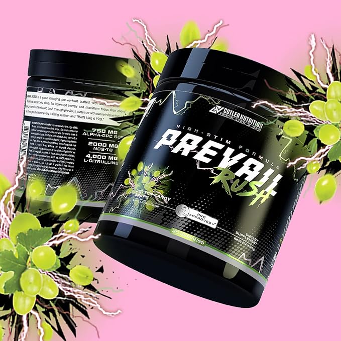 Cutler Nutrition High Stim Pre Workout Powder Prevail Rush Preworkout for Men & Women for Intense Pumps Energy and Focus with Caffeine NO3T Betaine and Dynamine | Cotton Candy Grape (20 Servings)