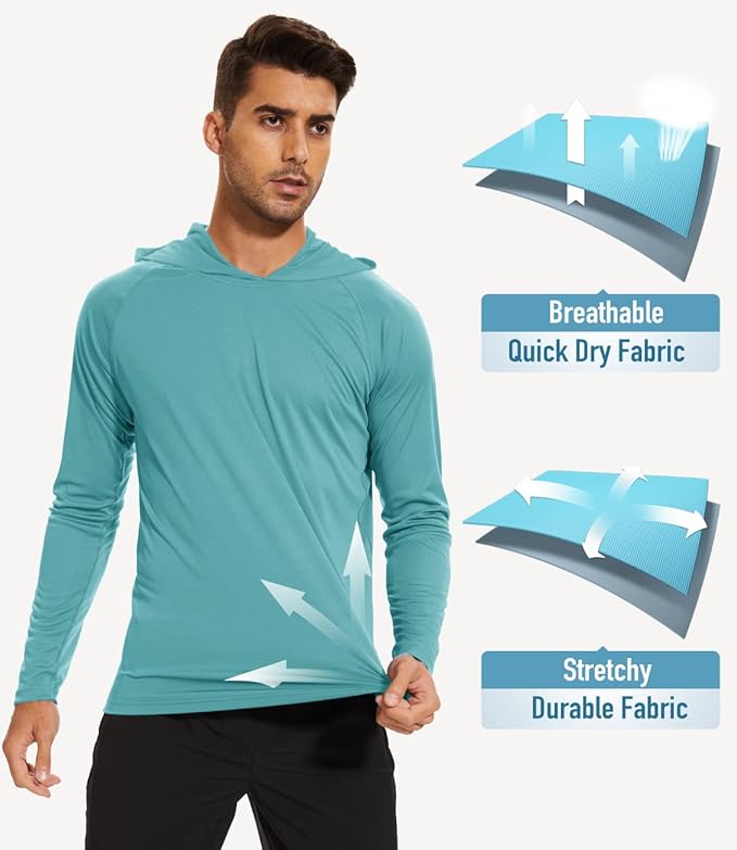 MAGCOMSEN Men's Hooded UPF 50+ Sun Protection T Shirts Long Sleeve Athletic Fishing Shirts Rash Guards