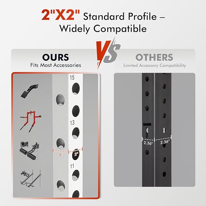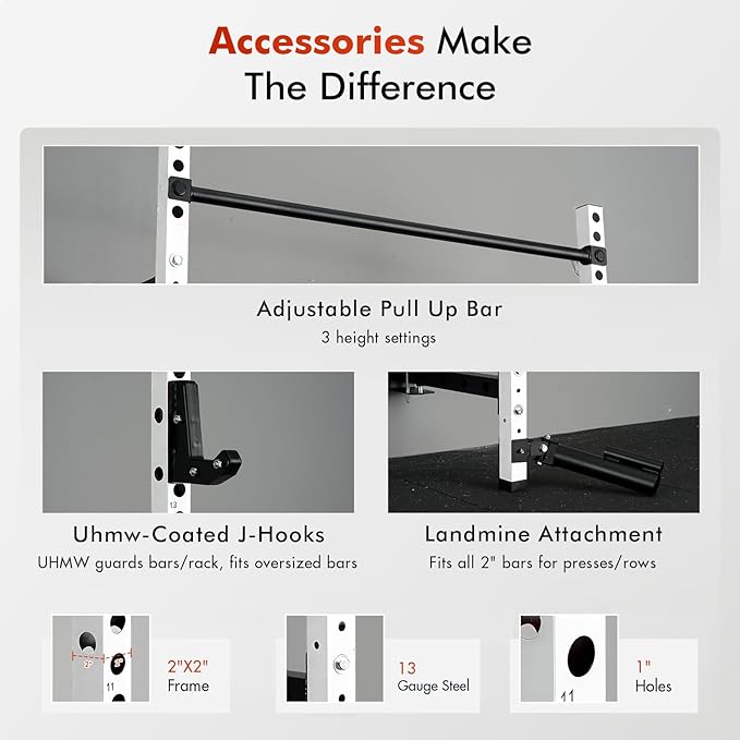 - Fitness Upgraded - Mikolo takes your workout to the next level with upgraded accessories. Quick-attach pull-up bar reaches 89" off the ground for an enhanced stretch, while J-cups with UHMW plastic inserts protect your bar and knurling. A 360° Dual Size T-bar row attachment with pin accommodates both Olympic and normal training bars.