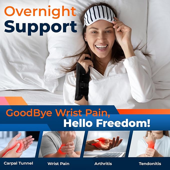 - Carpal Tunnel Wrist Brace Night Support Left Hand - Offering 360 Degrees of Unmatched Protection. Our unique design incorporates adjustable straps, a form-fitting pillow cushion, and ergonomic splints for comprehensive support. Ideal for daily use, physical activities, and overnight wrist care. Ultimate protection for maximum relief and comfort
