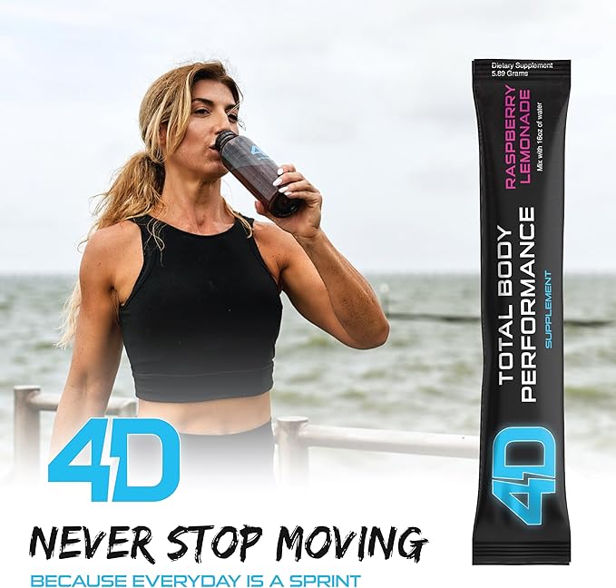 - RASPBERRY LEMONADE DRINK MIX - 4D Total Body Supplements’ Drink Mixes are an all in one premium clean energy drink mix. Formulated to help with endurance, joint care, skin health, immune system health, energy, and more. Never stop moving with 4D Total Body Supplements’ caffeinated Raspberry Lemonade Drink Mixes.