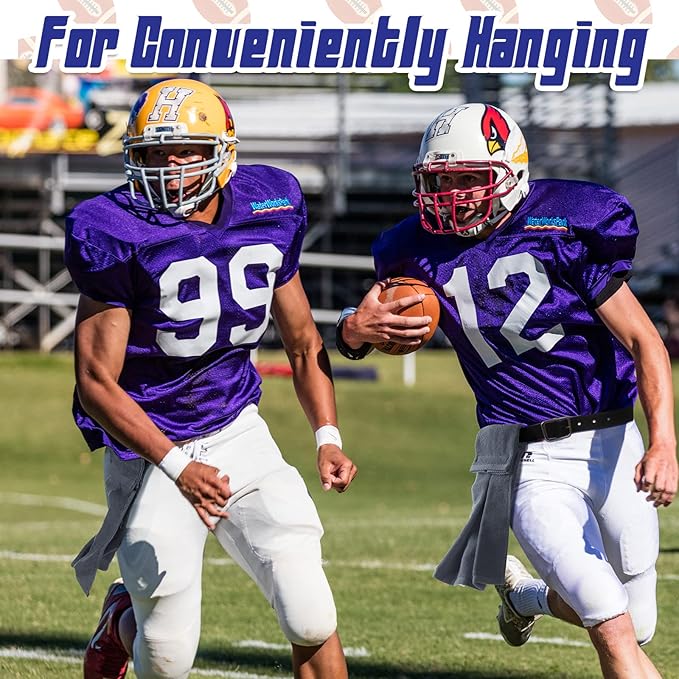 - Thoughtful Design: there are hoop and loop straps sewn on the football hand towels, so you can easily attach to fasten the towel to your belt, and which will stay attached even during the fiercest football competition