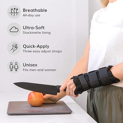 - Use the supportive compression splint for a variety of hand and wrist injuries, pain, and conditions; wrist brace helps treat and manage fracture recovery, sprains, carpal tunnel syndrome, arthritis, tendonitis, and more