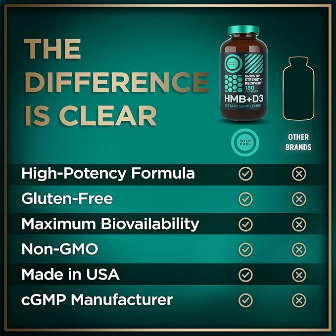 WILD FUEL 3,000mg HMB Supplement Plus Vitamin D3 - Muscle Growth, Strength, Fast Workout Recovery HMB Supplements for Men and Women - Calcium Beta-Hydroxy Beta-Methylbutyrate - 180 Capsules
