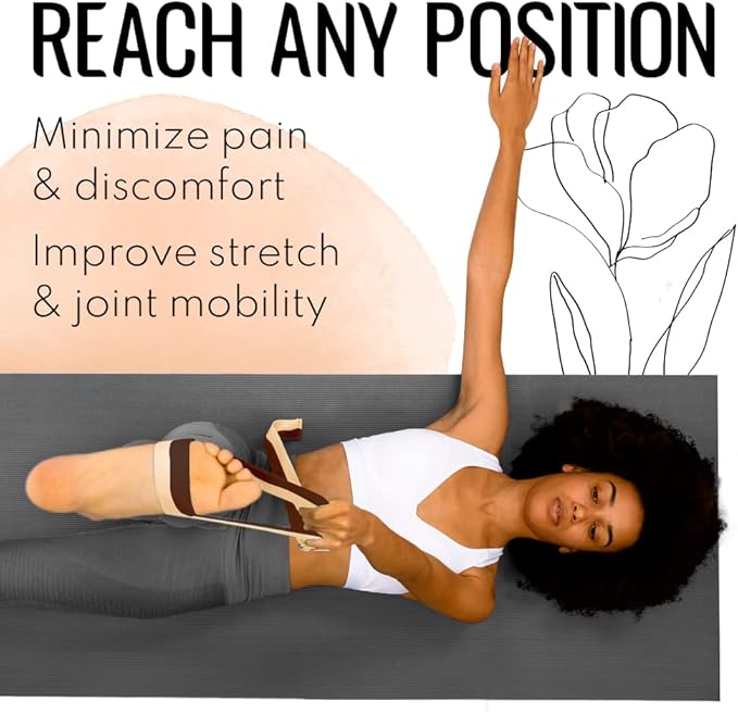 - SELF-CARE. Classic yoga strap helps to increase resistance and decrease tension while stretching, thus to achieve deeper stretch without harming one’s ligaments and muscle tissue. It aids to improve posture, balance, flexibility and joint mobility. The band is easy to adjust and secure in place, so that you can reach any position or asana steadily, consciously and with self-love. Widely used for yoga, pilates, physical therapy, post-injury rehabilitation, exercising and more.