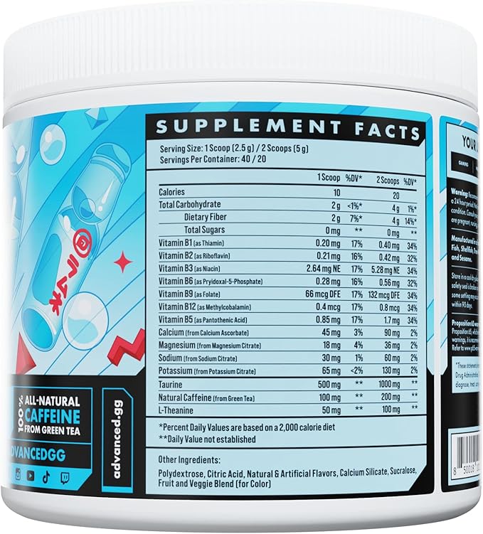 Advanced Energy - Energy Boosting Formula with Electrolytes for Hydration - L-Theanine to Combat Jitters - Sugar Free & Keto Friendly - No Maltodextrin (40 Servings) (Ramune)
